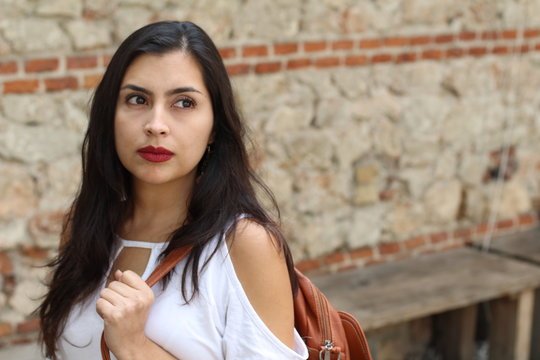 Portrait video of a gorgeous natural looking relaxed and happy Middle Eastern girl with beautiful olive skin