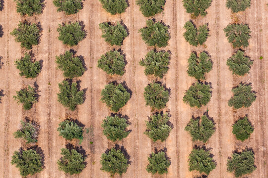 Olive trees grove on Mallorca Majorca landscape scenery aerial view in Spain