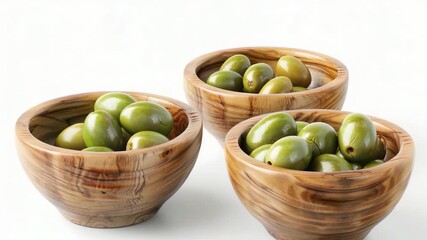 A beautifully crafted wooden table with a unique design sits against a striking wall featuring soft, organic patterns. Green olives in a bowl add a touch of life to the tranquil atmosphere
