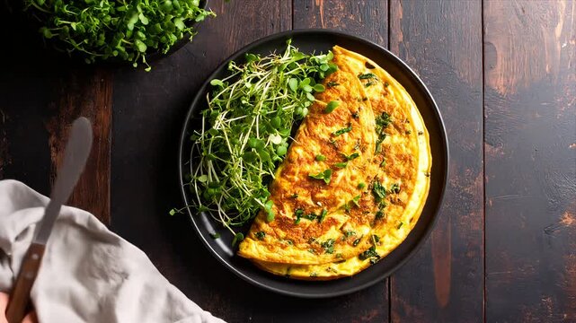 Delicious breakfast omelet with microgreens