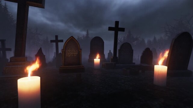 Mysterious graveyard under moonlit sky