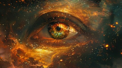 the enigmatic eye beholds the celestial fabric, observing times cycle, embodying the omnipotent eye motif