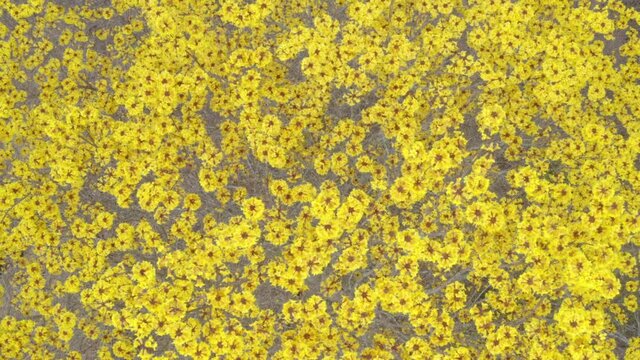 Close up of the yellow flower from a guayacán tree; Guaiacum sanctum; that flowers only once a year slowly zooming out