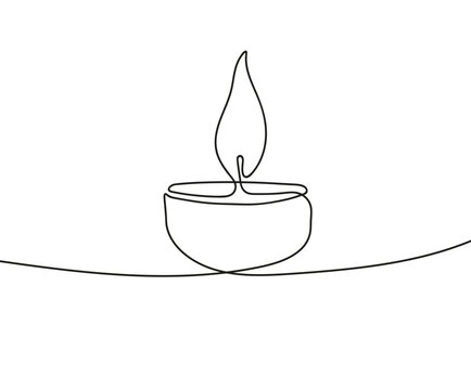 Burning fire candle continuous one line drawing