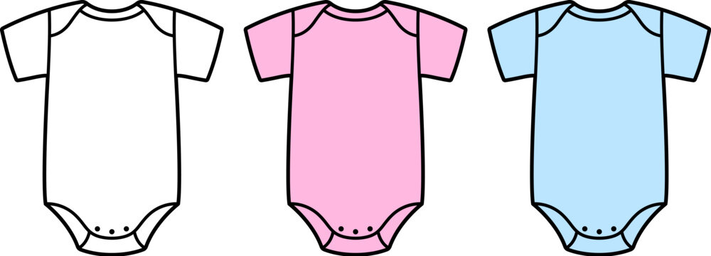 Cute cartoon baby onesie icon. Black and white outline, pink and blue color. Baby shower, gender reveal. Vector clipart illustration.
