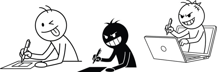 Stick figures writing drawing illustration concept of good bad and evil online behavior art
