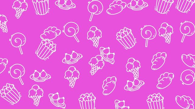 Ecommerce pattern with white outline sweets on pink provides a playful design for online store backgrounds, suitable for websites.