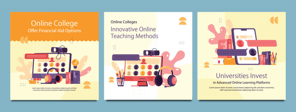 Online business webinars and school admissions graphic design template