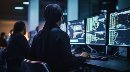 Professional woman engaging with laptop for business presentation