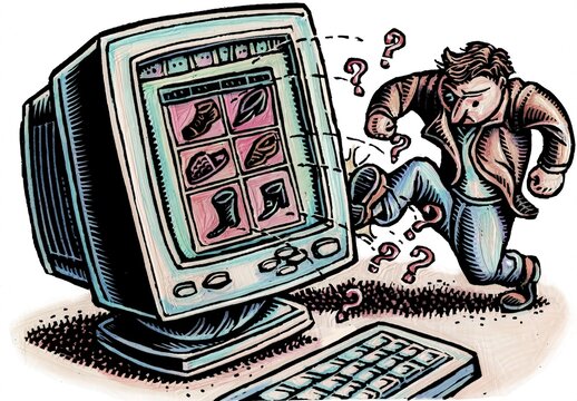 angry man kicks a computer monitor showing a CAPTCHA test to prove he is a human