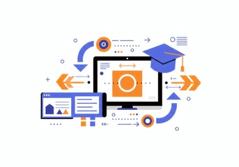 Modern minimalist vector symbolizing online education and digital knowledge transfer. Perfect for e-learning platforms