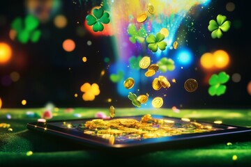 St. Patrick's day digital jackpot: gold coins and clovers in vibrant online casino celebration