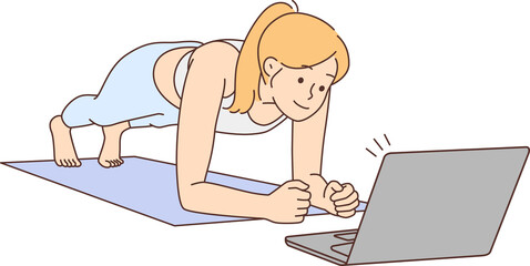 Online fitness. People on laptop in online fitness training working out with virtual personal coach
