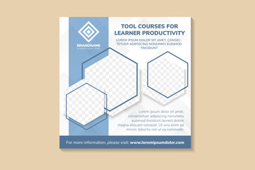 Colorful and modern social media post templates for promoting online learning courses. Includes editable photo placeholders and icons.
