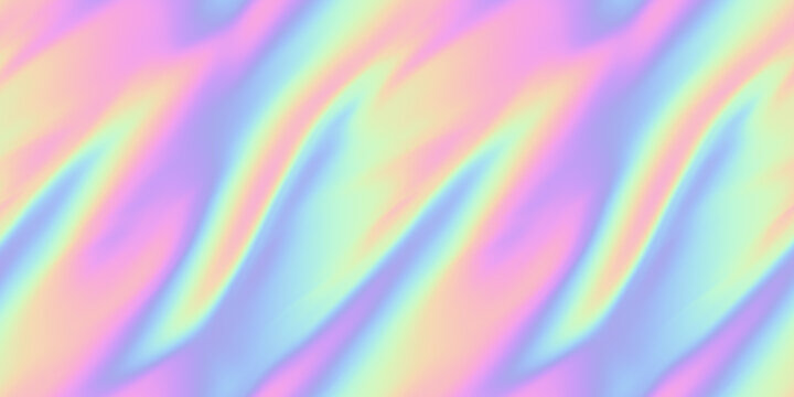 Seamless Y2K Futurism iridescent playful pastel holographic heatmap ombre gradient waves or flames background texture. Modern opalescent pale rainbow swirl neon nostalgic cyberbunk vaporwave pattern.