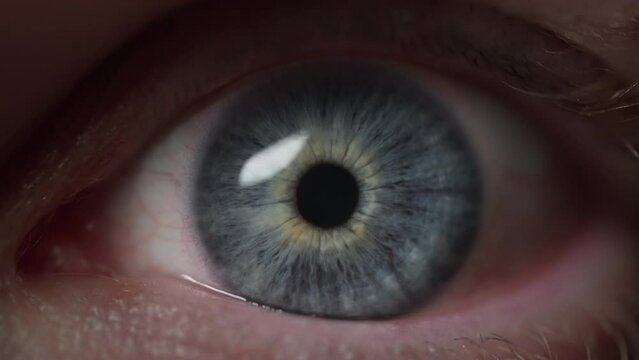 Human eye iris opening pupil extreme close up slow motion 60fps 4k