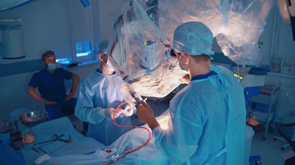 Group of doctors doing operation. Group of surgeons at work operating in surgical theatre