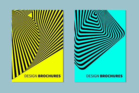 Cover design template. Opt art. Abstract striped background. Ripple effect. Wavy pattern. Black and white. Vector illustration for brochure, poster, card, poster or flyer.
