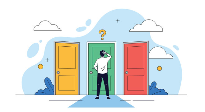 Road decision moment, with a person choosing between two paths in a scenic landscape, road decision, life choices