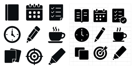 Productivity and task management icons set – flat, organization and efficiency symbols