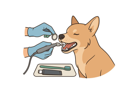 dog dental polish professional cleaning and oral hygiene maintenance flat vector illustration style isolated on white background