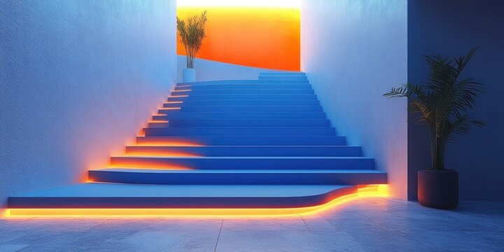 Success Staircase Concept Growth Career Progression Steps Blue to Orange Achievement Modern Design