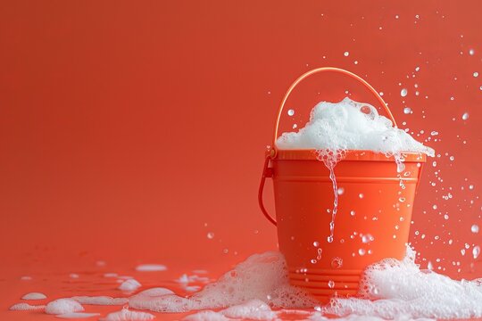 An orange bucket holds soft pink sand