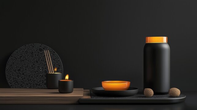 Bright colorful still life of cozy home interior with gray sofa and orange details