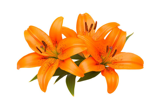 Lily flower.  bouquet of orange lilies on a white background. bouquet of orange flowers. Aroma of lilies