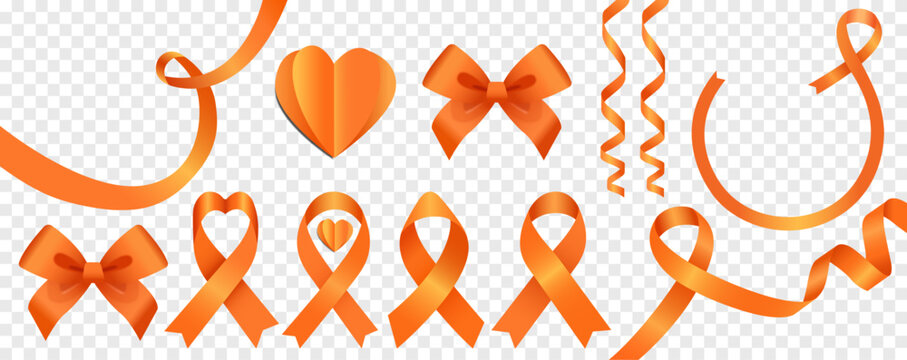 Vector orange ribbon as a symbol of animal abuse, leukemia awareness, kidney cancer association, multiple Sclerosis.