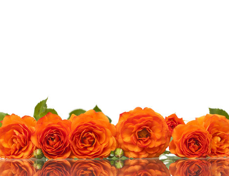 Orange roses in line on white background