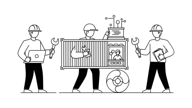 Orchestration systems use icons for coordination, sequencing, and management, transparent background. Outline icons set.