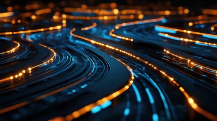 Futuristic network hub, end-to-end orchestration of infrastructure with dynamic, interconnected paths