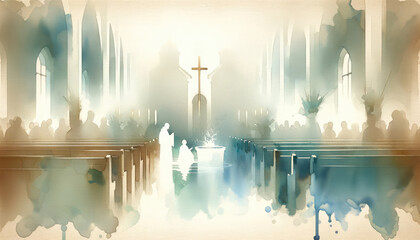 Watercolor painting of Baptism in a Church