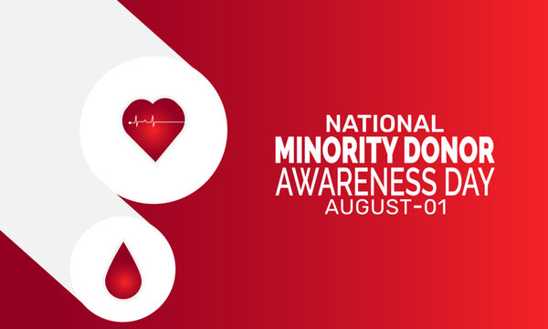 Celebrate National Minority Donor Awareness Month is august. Save Lives Through Organ Donation. Holiday concept. Blood, heart, hand, liver icon. Banner poster, flyer and background design template.