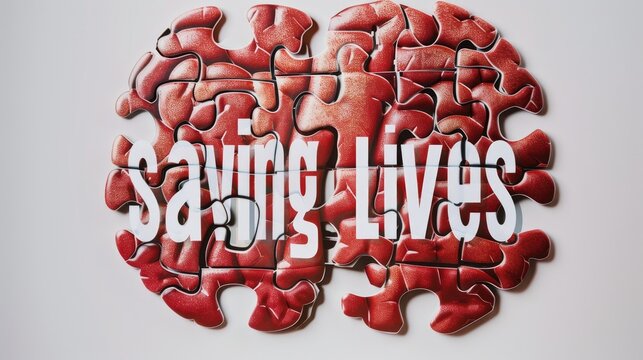Heart Puzzle "Saving Lives". A heart-shaped puzzle in bold red with pieces forming the phrase "Saving Lives," symbolizing the vital impact of organ donation