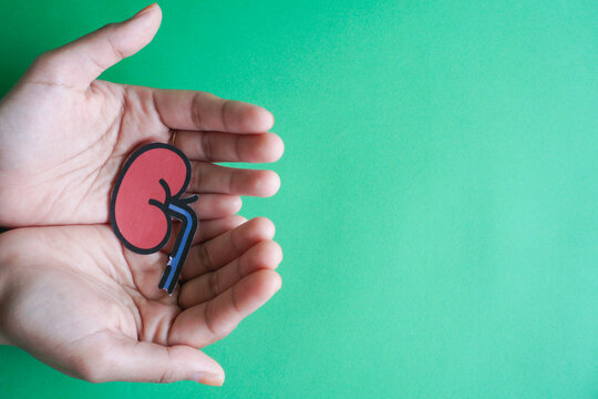 Hands holding kidney shaped paper, world kidney day, National Organ Donor Day, charity donation concept