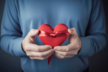 Hands holding red heart, healthcare, love, organ donation, world heart day, world health day, national organ donor day.