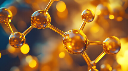 A close-up view reveals intricate molecular structures in bright golden hues, highlighting the beauty of chemistry and material science in a laboratory.