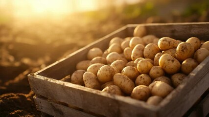 Potato farming in a field with sacks of fresh organic potatoes.