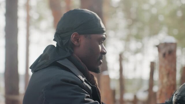 equestrian equipment arrangement, individual carefully setting up horse equipment beside fencing, stable assistant methodically arranging horse riding gear beneath gentle forest illumination