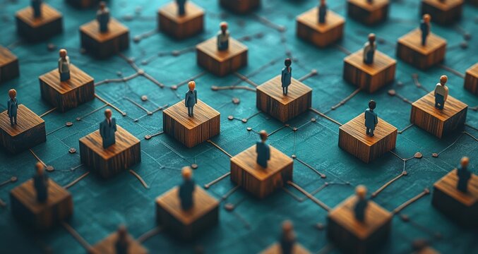 Management Structure concept. Team collaborating on a digital chart, showcasing hierarchical positions in a modern corporate setup. Efficient organizational design. Flat vector illustration.