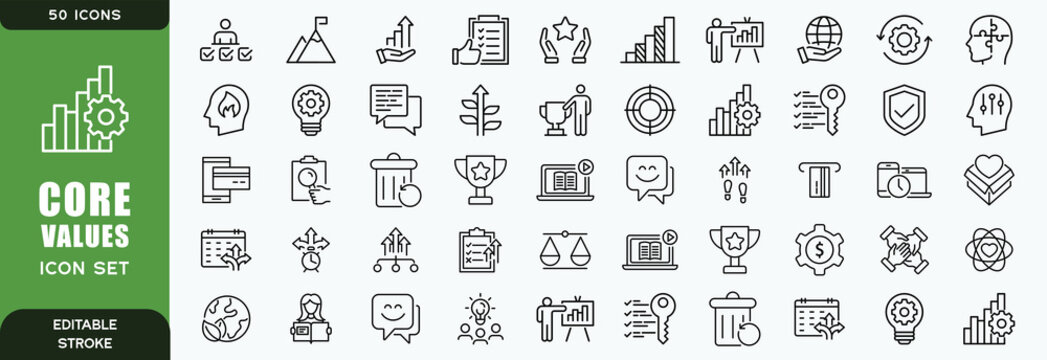 Core values 50 icon set. Full Vector Outline Style Icons. Vector Stock illustration