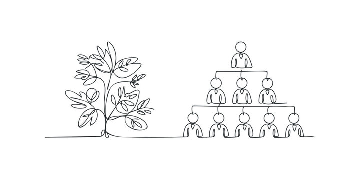 Line drawing of a flourishing plant and a hierarchical organizational chart