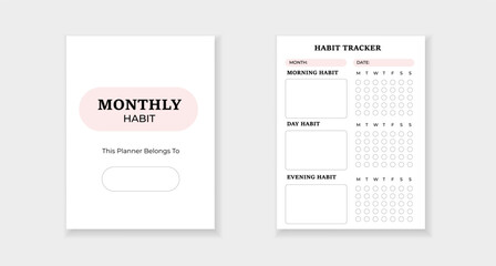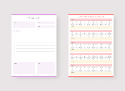 Modern planner template set. Set of planner and to do list. Monthly habit and to do list planner template. Vector illustration.