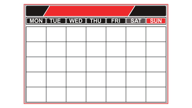 Empty Monthly Calendar Template Illustration With Weekday Headers And Clean Grid Layout Designed For Planning Scheduling And Organizational Use, Fully Editable Vector Template.
