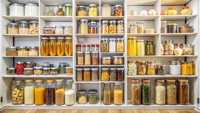 Organized bulk goods aisle medium shot emphasizing easily accessible products with the main object clear and surrounding shelves softly out of focus.