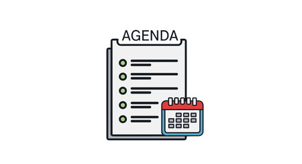 A stylized coffee cup sits beside a calendar icon with a checkmark
