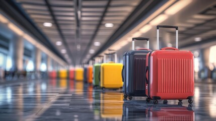 Suitcases ready for adventure in a bustling terminal, capturing the essence of travel and exploration.