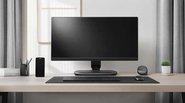 Modern Minimalist Desk Setup with Computer Monitor and Accessories